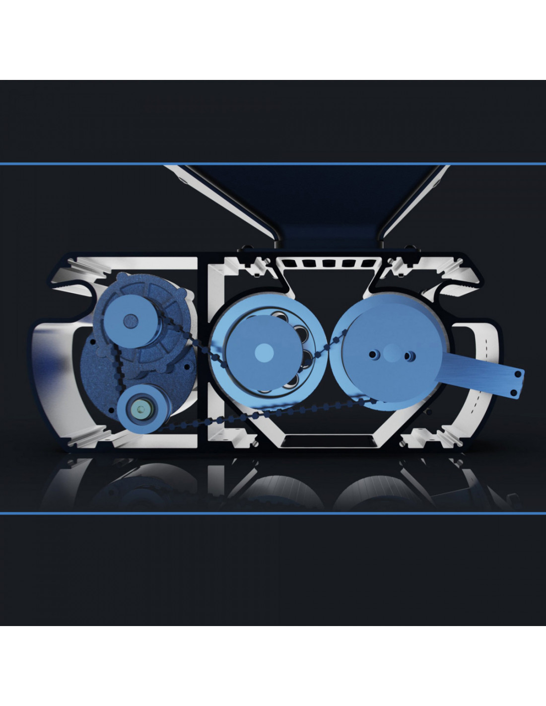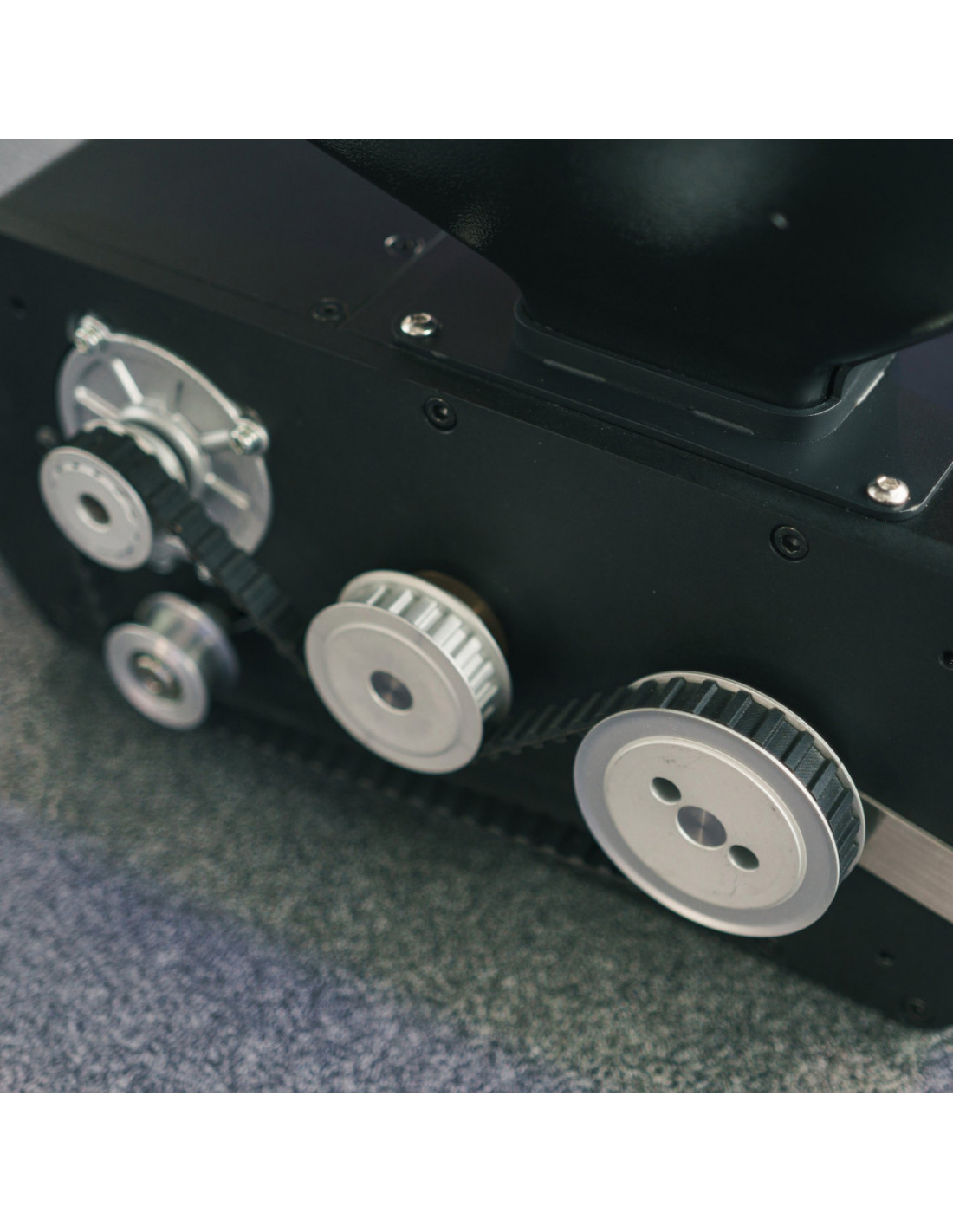 En outre, la structure en deux parties isole le moteur et les rouleaux dans deux compartiments séparés, ce qui empêche la poussière et les impuretés de s'accumuler dans le moteur et la transmission. Tous les rouleaux et poulies rotatives sont dotés de leurs propres roulements à billes, totalement étanches, afin de garantir une faible résistance et une longue durée de vie.