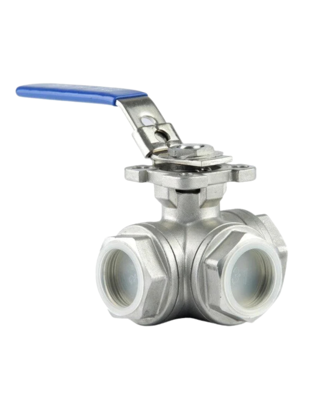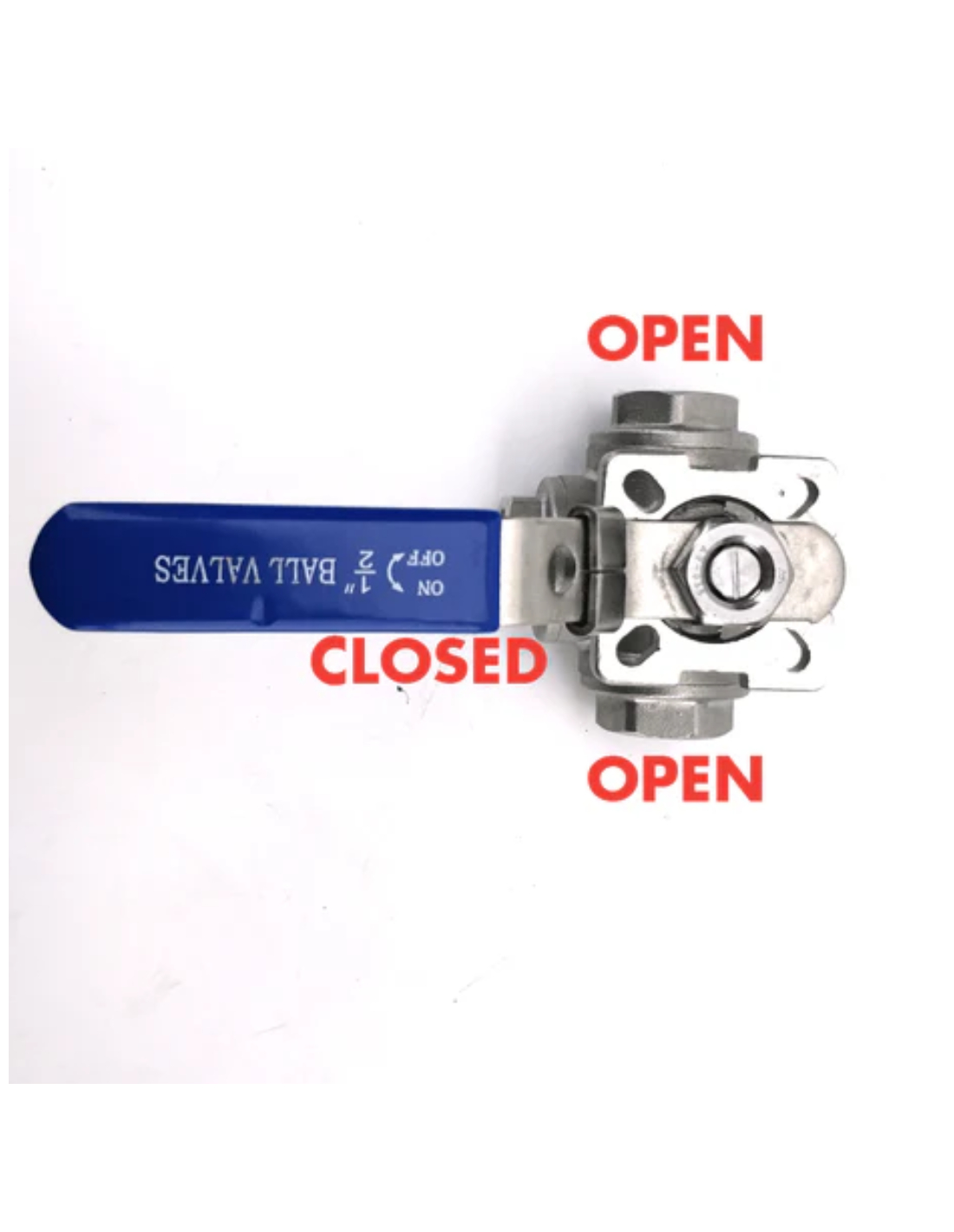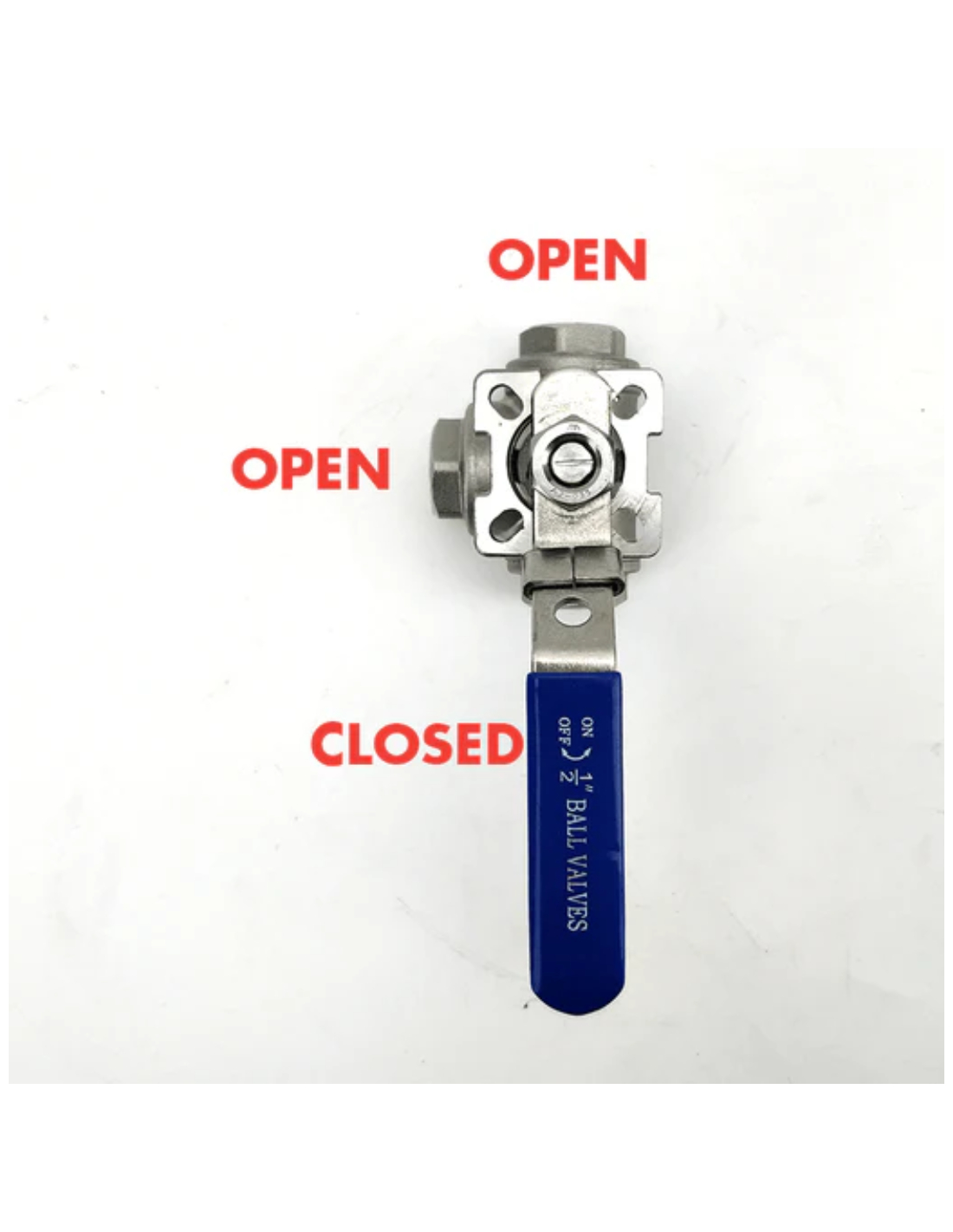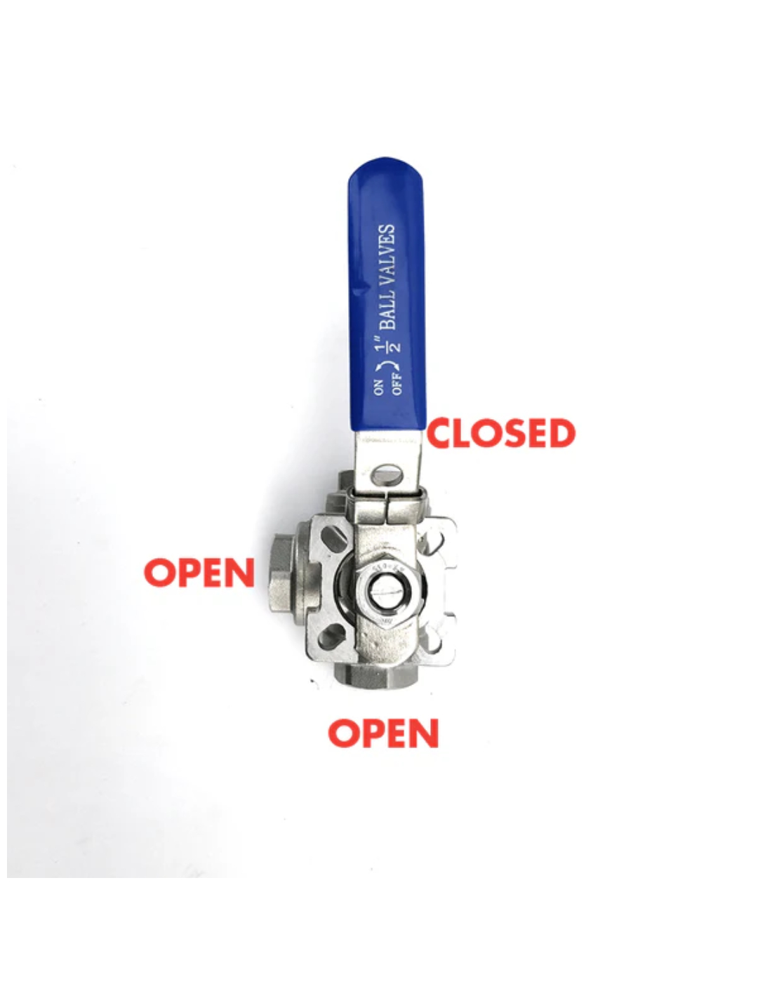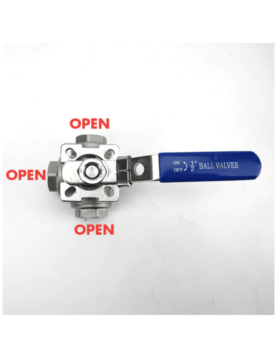 Vanne à bille 3 voies à filetage 1/2" (acier inoxydable 304) - Configuration à orifice en T