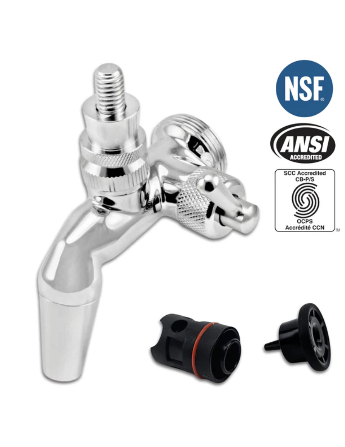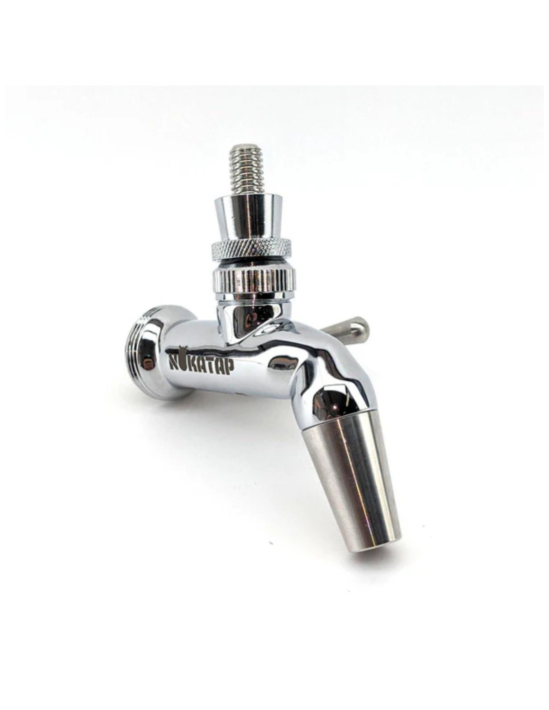 Le modèle Nukatap FC (Flow Control) est la toute dernière technologie en matière de robinet à débit contrôlé. Il vous offre tous les avantages d'un robinet à fermeture frontale, tout en vous permettant de contrôler le débit grâce à un simple levier de réglage situé à droite. L'équilibrage de vos conduites de bière est ainsi un jeu d'enfant. Ce type de robinet est généralement adapté aux clients qui changent fréquemment de style de bière et recherchent une flexibilité maximale pour leur système de tirage. Le Nukatap FC est également le premier robinet à fermeture frontale jamais fabriqué à pouvoir être utilisé avec un ressort de rappel. Auparavant, sur les anciens modèles de robinets, comme l'Intertap FC, il n'était pas possible d'utiliser le ressort de rappel automatique. Le nouveau design breveté du Nukatap FC intègre également cette fonctionnalité très appréciée.